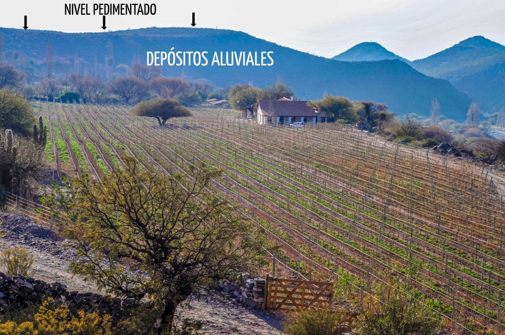 Este paraje de montaña ubicado a 15km al oeste de San Carlos y a 45km de Cafayate posee un incipiente desarrollo vitivinícola. Geomorfológicamente, los viñedos están ubicados sobre una pequeña terraza de niveles pedimentados de una cubierta aluvial y toda la zona está bajo una intensa tectónica que hace que se esté elevando todo. Ello hace que en este sector afloren las sedimentitas de la Fm Angualasto (las rocas fotogénicas de la quebrada de las Flechas) y la cubierta aluvial cuaternaria se apoya sobre estas rocas en discordancia angular.