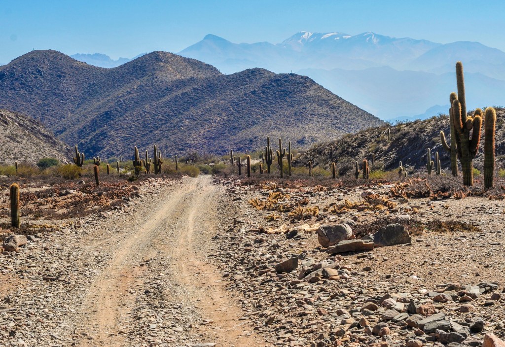 Vista hacia el norte, descendiendo hacia la zona de Amaicha, Colomé y Tacuil. Al fondo se aprecia el nevado de Cachi, que hace de cierre este al valle de Luracatao. Exceptuando el eje Tolombón-Cayafate-Animaná, las regiones productivas del NOA son pequeños valles, con aún más pequeñas producciones y muy desconectados entre sí.