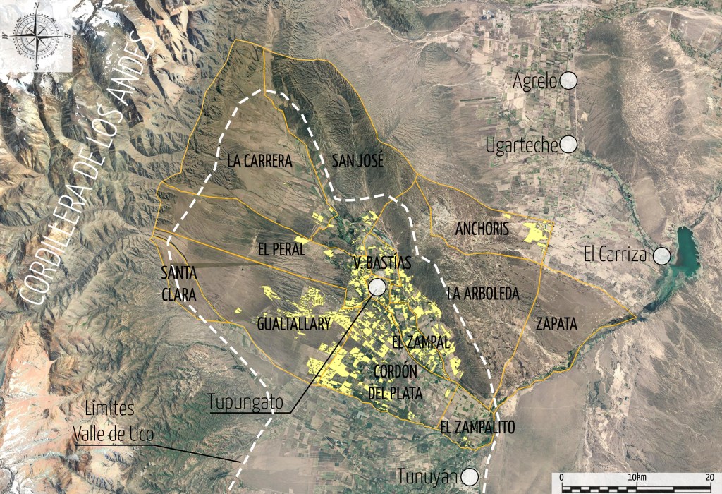 La división administrativa del departamento Tupungato guarda muchas curiosidades. Para aquel que no conozca, este departamento es el más norteño de los tres que conforman el Valle de Uco (VDU). Algunos de los nombres de los distritos les resultarán conocidos por encontrarse en las etiquetas. Gualtallary, El Zampal, El Peral son sólo algunos de ellos.