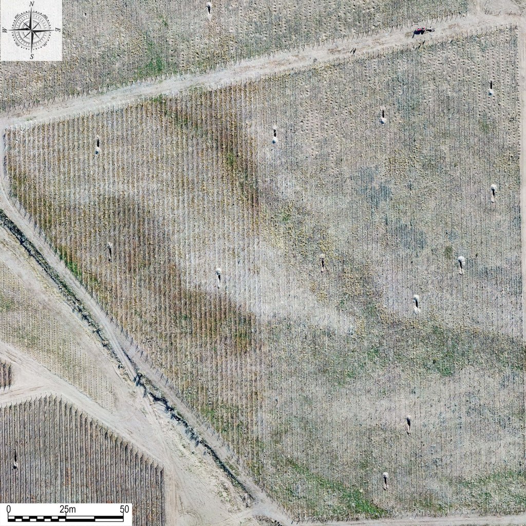 FOTO 1: imagen aérea de un cuartel. También se ven las calicatas abiertas y se aprecian cambios en la «coloración» de la superficie.