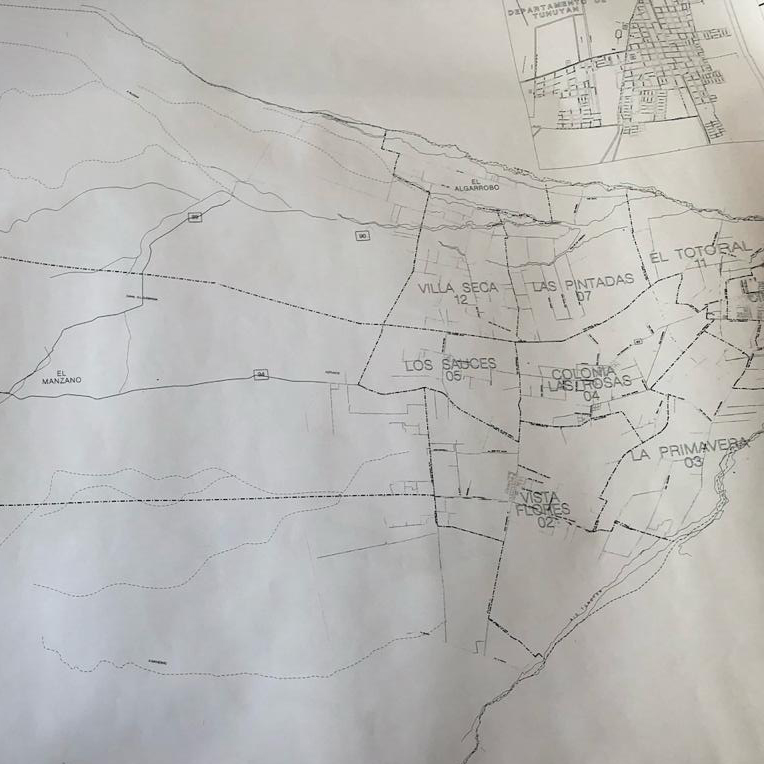 Quien les escribe intentó averiguar por todos lados los límites, pero nunca había respuesta. Hasta que el amigo @agusalcoleas pudo ser atendido por Catastro del municipio y accedió a los límites en papel. El tuvo la generosidad de sacarles fotos y compartirla con nosotros (imagen 2) y en base a ello, pudimos reconstruirlos. Esos son los límites que siempre mostramos; todos los mapas distritales fueron hechos con ellos ya que era la información más oficial que existía y por ende la más fidedigna.