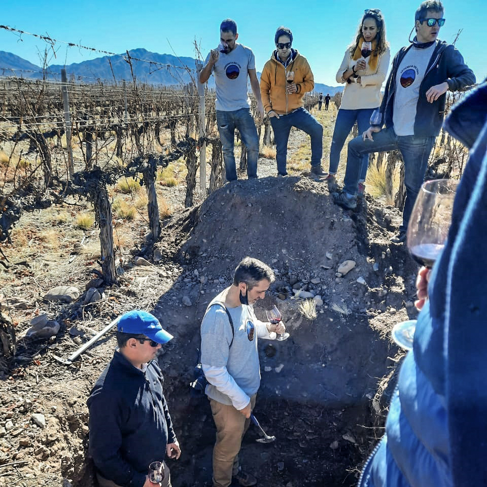 El primer día fue dedicado en su totalidad al valle de Pedernal. Nace a nivel vitícola en 1994 y actualmente existe una bodega y 900ha de viñas. Junto a un grupo de productores y elaboradores recorrimos las principales fincas y degustamos los vinos de allí. @graffignasantiago nos mostró su bodega. Con Feli y Juli de @elefantewines vimos calicatas, viñas y degustamos los vinos. Con @jarnulphi y equipo visitamos la finca de Las Moras y con @pupigonzalez y equipo recorrimos la finca de Pyros e hicimos el cónclave de productores.